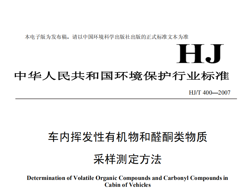 HJT400-2007車內(nèi)揮發(fā)性有機物和醛酮類物質(zhì)采樣測定方法 HJ/T400-2007車內(nèi)揮發(fā)性有機物和醛酮類物質(zhì)采樣測定方法HJT400-2007車內(nèi)揮發(fā)性有... 更新日期:2020-05-11 下載包(1)