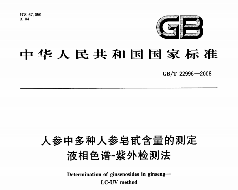 GBT 22996-2008 人參中多種人參皂甙含量的測(cè)定 液相色譜-紫外檢測(cè)法 更新日期:2023-01-03 下載包(1)
