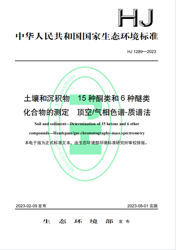 土壤和沉積物 15種酮類和6種醚類化合物的測(cè)定 頂空-氣相色譜-質(zhì)譜法 (HJ 1289—2023) 更新日期:2023-08-02 下載包(1)