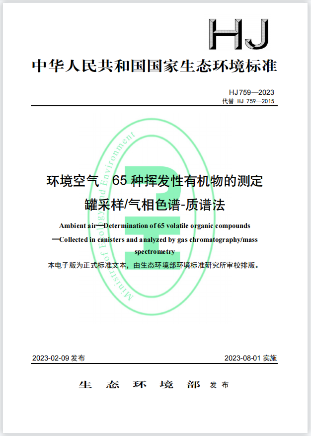 HJ 759—2023環(huán)境空氣 65 種揮發(fā)性有機(jī)物的測(cè)定 罐采樣 氣相色譜-質(zhì)譜法 HJ 759—2023環(huán)境空氣 65 種揮發(fā)性有機(jī)物的測(cè)定 罐采樣 氣相色譜-質(zhì)譜法 更新日期:2023-03-15 下載包(1)