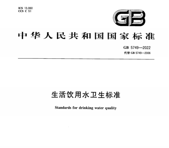 《生活飲用水衛(wèi)生標(biāo)準(zhǔn)》GB 5749-2022已批準(zhǔn),將于2023年4月1日正式實(shí)施 國家市場監(jiān)督管理總局(國家標(biāo)準(zhǔn)化管理委員會)?關(guān)于批準(zhǔn)發(fā)布《生活飲用水衛(wèi)生標(biāo)準(zhǔn)》等5項(xiàng)強(qiáng)制性國家標(biāo)準(zhǔn)... 更新日期:2022-04-04 下載包(1)